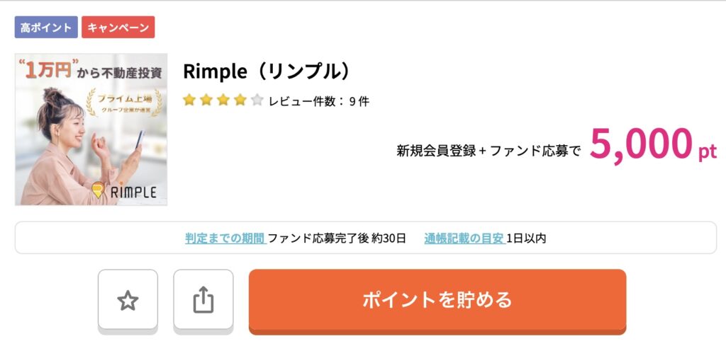 ポイントサイト経由での不動産クラウドファンディング「Rimple」口座開設+投資案件が・・かなり激アツで継続中です!!