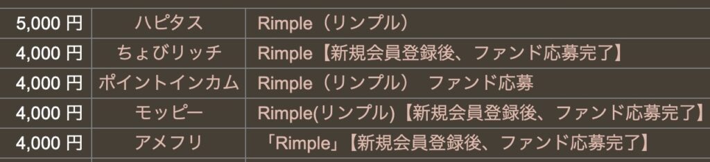 ハピタスさんに登録済みの方は、こちらからこの超絶お得な「Rimple」口座開設+投資完了案件が利用できます。