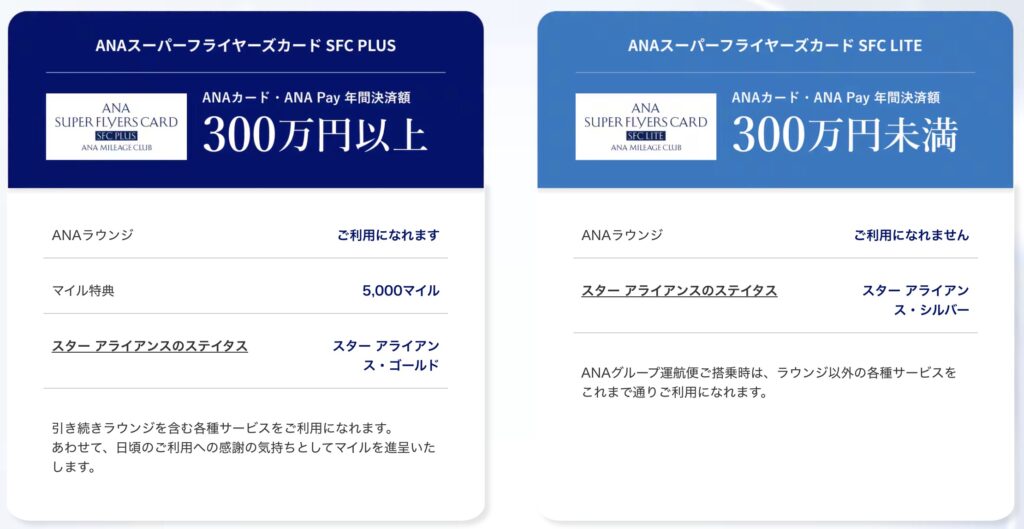 前年の対象期間に300万円以上ANA SFCカード/ANA Payを利用すればPLUS会員としてこれまで通りのSFCサービスが受けられますが・・。