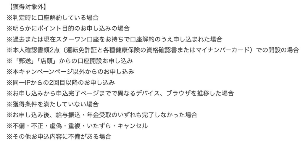 その他、ポイント却下条件がこちらですが・・。