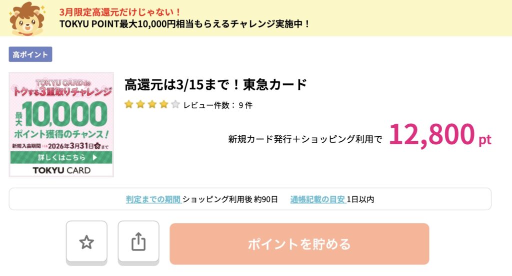 もちろん、東急の店舗なんて周辺にないっす・・って方は、ポイントサイトの12,800円だけでもOKかと思います。