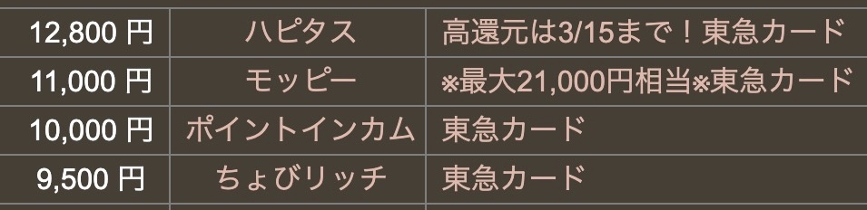 ハピタスさんの東急カード案件がこちらですね。