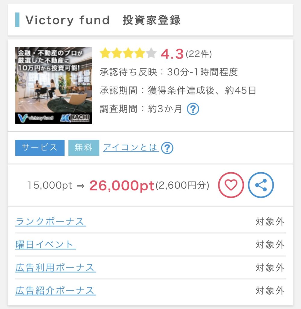ポイントインカムさんの「Victory fund」案件がこちらですね。