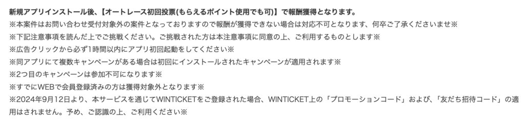 そして、最後になりますが、2024年9月12日からWinticketのポイントサイト案件と友達紹介コードの併用はできなくなりました。
