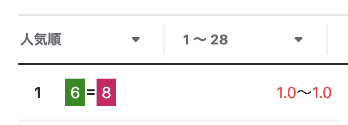 前述のとおり、「ワイド」とは、1〜3着に入る選手2名を当てる・・という投票方式です。