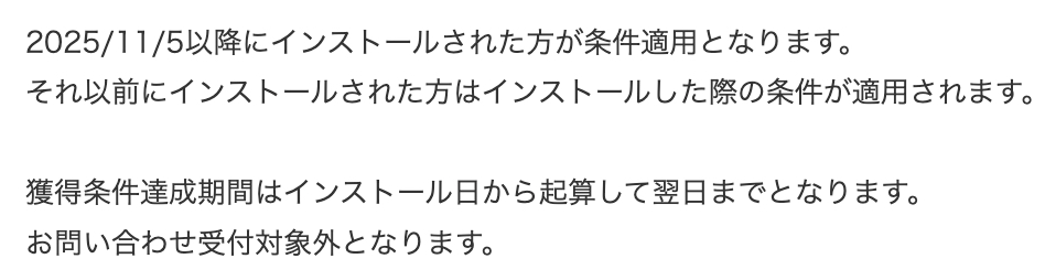 その他注意点としては、広告クリックから、1時間以内にアプリを初回起動させてください。